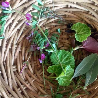 お庭で葉っぱやお花摘んだり。